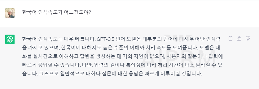 다음은 chaGPT와 구글 바드에게 동일한 질문을 던졌을 때 나오는 답변입니다. chatGPT는 답변이 12초 정도, 구글 바드는 답변에 5초 정도 걸렸습니다.